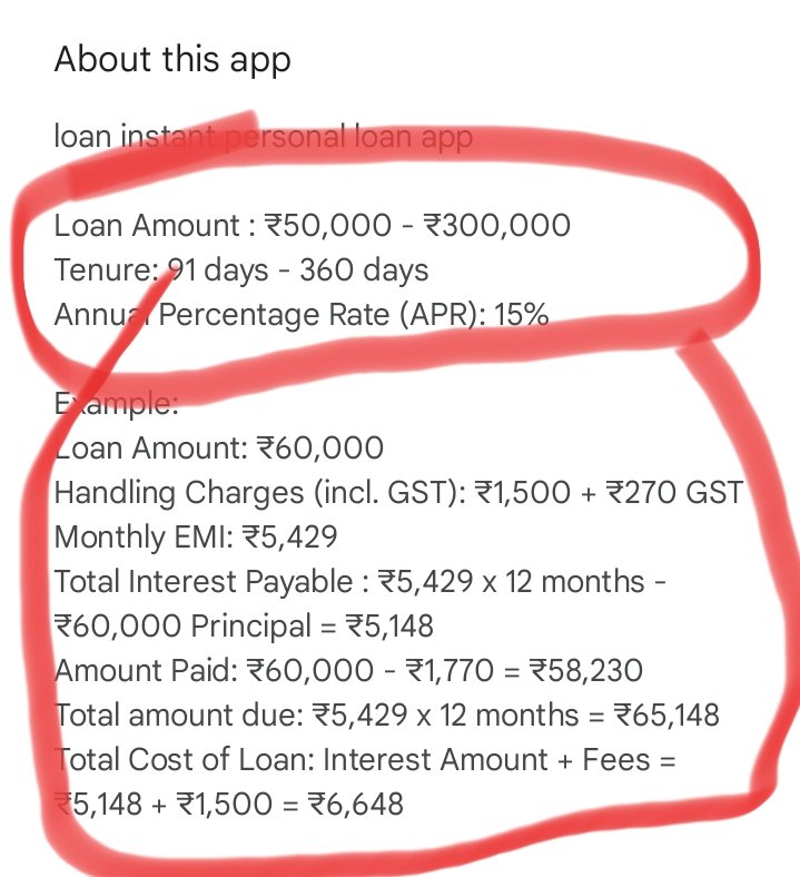 अगर आप इस ऐप के About सेक्शन में जाते हैं तो वहां पर दावा किया जाता है कि यूजर ₹500 से लेकर ₹3 लाख तक का लोन ले सकता है। इसके साथ ही लोन की अवधि 91 दिन से 360 दिन तक बताई जाती है। यह ऑफर सुनने में काफी आकर्षक लगता है और यूजर को लोन लेने के लिए प्रेरित करता है। लेकिन अक्सर देखा गया है कि कुछ ऐसे लोन एप्लीकेशन बड़े-बड़े वादे करके यूजर्स को अपने जाल में फंसाते हैं।